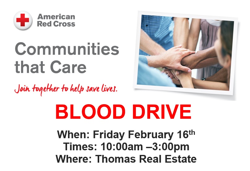 This blood drive is more than just a community event; it's an opportunity to make a real difference. Your participation could be the key to saving lives and providing critical help to patients in need. Join us at Thomas Real Estate on February 16th and be a part of this life-saving mission. Your donation matters!