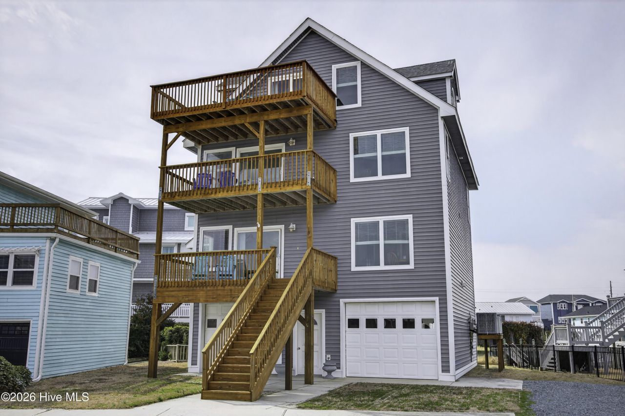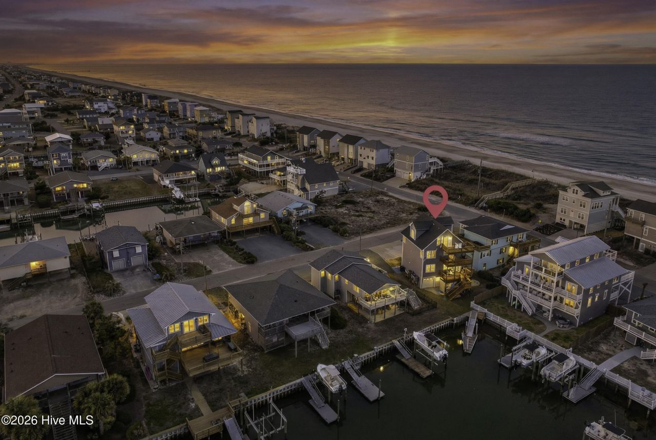 A rare dual-water offering, this canal-front residence is positioned across from Beach Access 19 on the South End of Topsail Beach - placing the Atlantic Ocean at your doorstep and a dock on the canal just beyond the back deck.Begin your mornings with ocean sunrises, spend the afternoon kayaking or fishing from the canal, and end the day with sunset views stretching across the Intracoastal Waterway. With water on both sides and views from nearly every room, this home captures the essence of coastal living.Fully renovated in 2018 and exceptionally maintained, the home pairs clean coastal design with thoughtful functionality. Abundant natural light fills the interiors, while six distinct decks offer multiple vantage points to enjoy both ocean and canal views from every level.The entire top floor is devoted to an impressive owner's retreat featuring a spacious primary bedroom, well-appointed bath, sitting room, study, and lounge. Two separate decks overlook both the canal and the ocean, offering the most elevated perspective in the home.The second floor includes an additional bedroom with ensuite bath and its own canal-facing deck, along with a dedicated living room that creates flexible gathering space for guests or extended family. With living areas on every floor, the layout balances connection with retreat.Offered fully furnished and turnkey, the property is ready for immediate enjoyment. Enhancements include an EV charger, outdoor shower, generous garage storage with workshop space, and three HVAC systems (2014, 2024, 2025).Whether envisioned as a primary residence, vacation home, or investment opportunity, this exceptional dual-water property delivers location, versatility, and lasting lifestyle appeal in one of Topsail Beach's most desirable settings.