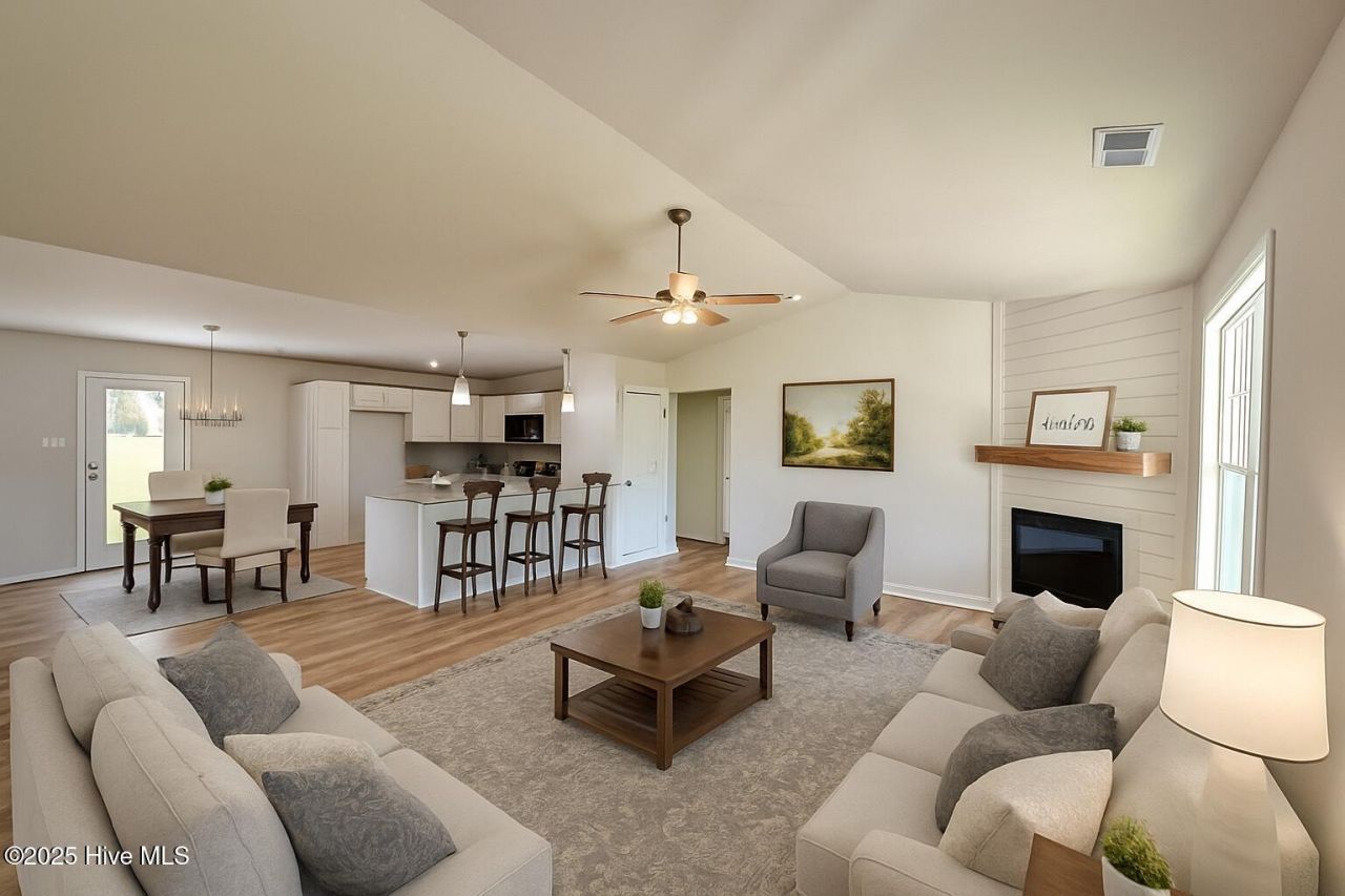 The Brandon-Welcome to this charming new home featuring a grand front porch is perfect for rocking chairs, porch swings, and evenings outdoors. Step inside to find a bright, open layout highlighted by a vaulted ceiling and luxurious LVP flooring. The family room showcases a beautifully accented fireplace with elegant trim. The dining area is conveniently located just off the kitchen and provides access to the covered back patio. The kitchen impresses with granite countertops, tile backsplash, an eat-at bar, built-in pantry, and ample cabinetry. Privately situated on one side of the home, the primary suite offers a spacious walk-in closet and a stylish bath complete with double sink vanity, granite countertops, and LVP flooring. Two additional bedrooms, each with walk-in closets, share a full hall bath with granite countertops and LVP flooring. Step outside to relax under your covered back patio and enjoy views of your expansive backyard that is the perfect spot to unwind or entertain. Welcome home