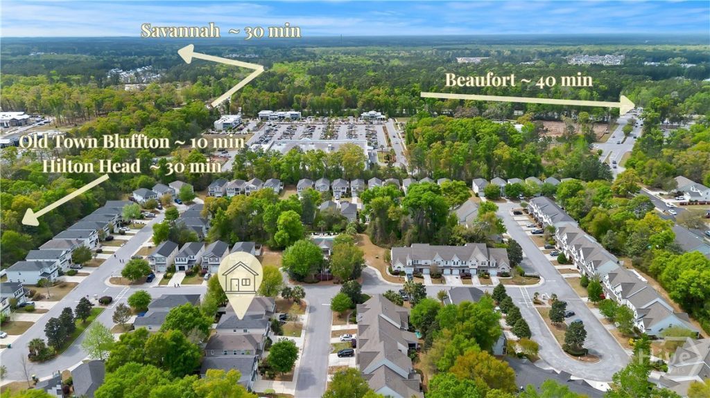 Palmetto Pointe Townes, 3-bedroom 2.5 bath, single-family home featuring an open floor plan that connects the living, dining, and kitchen spaces for easy flow and entertaining. The kitchen offers granite countertops, an oversized island with seating, upgraded cabinetry, and updated appliances including a range with double ovens. All bedrooms are on the second floor, including the primary suite with a large walk-in closet and an ensuite with a vanity with dual sinks, a garden tub, a separate shower, and ample space to unwind. Additional highlights include spray foam insulation in the attic for added energy efficiency and a spacious laundry room. Outside, the extended driveway leads to the garage, and a fully fenced backyard with fresh sod. Located just moments from the community pool and close to shopping, dining, and grocery stores, this home pairs everyday convenience with the ease of living buyers are looking for in today's Bluffton market.