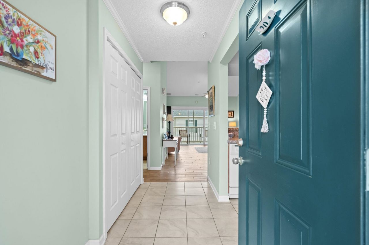 Welcome to this beautifully maintained 2-bedroom, 2-bathroom top-floor condo offering comfort, space, and a light-filled coastal feel. Step inside to an inviting open-concept layout highlighted by soaring vaulted ceilings and abundant natural light, creating an airy and spacious atmosphere throughout the main living area. The living room flows seamlessly onto a private screened-in balcony, perfect for enjoying your morning coffee or relaxing in the evenings with peaceful community views. The galley style kitchen is both functional and welcoming, featuring ample cabinetry, generous counter space, and a breakfast bar that opens to the living and dining areasideal for entertaining or everyday living. The primary suite offers a spacious retreat with large windows, plenty of natural light, and a private en-suite bathroom. A second bedroom and full bath provide flexibility for guests, family, or a home office setup. Additional highlights include in-unit laundry, durable flooring, and a well-designed split-bedroom layout for added privacy. Located in a well-kept community, residents enjoy access to a beautiful pool and relaxing outdoor spaces, all while being just a short drive to golf, shopping, dining, and the beach. Whether youre searching for a primary residence, vacation getaway, or investment opportunity, this top-floor condo delivers the perfect blend of convenience and coastal charm. Buyer is responsible for verification