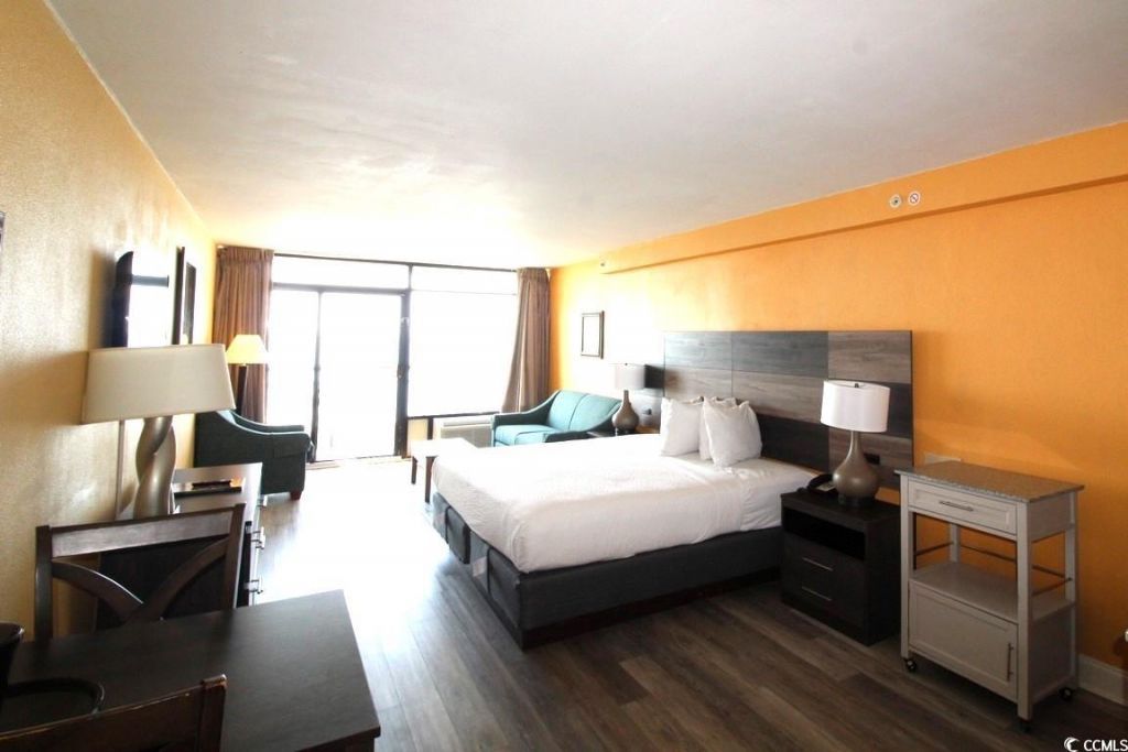 This oceanfront, studio condominium is located in the Landmark Resort, an oceanfront resort with 17 indoor and outdoor pools, including an on-site waterpark. This is an income generating property with an on-site rental management company. This unit has new laminate flooring & new AC unit. New mattresses & new furniture. Sleeping accommodations for four; double bed and pull-out sleeper sofa. The Landmark Resort has a variety of onsite dining options. The Gazebo Restaurant is open for breakfast year-round. Latitudes Grill opens daily for lunch and dinner. During the summer months guests can enjoy the poolside bar, snack shop and grill. The onsite Havana Java Bar proudly servs Starbucks Coffee. Make a splash at Landmark Resort with spectacular amenities including newly renovated indoor and outdoor pools, lazy rivers, whirlpools, kiddie pools & H2Oasis waterpark. On-site Laundry, Exercise Facility, Video Arcade Parking Garage & Mini-Golf course. The Landmark Resort is a Family Friendly oceanfront resort in the middle of Myrtle Beach, close to the airport and all the attractions the Coastal Carolinas has to offer. www.landmarkresort.com