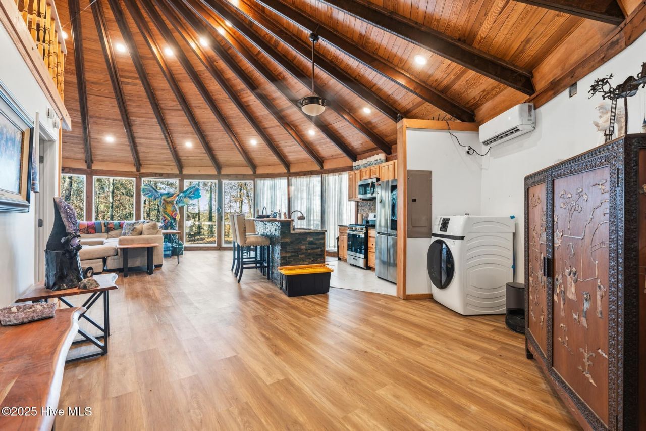 Luxury meets rustic charm in this one-of-a-kind Yurt-style home. Set on 3.77 acres, this property offers the perfect blend of country tranquility and modern convenience. Inside, you'll find an open-concept living space with a loft, one bedroom, and one bathroom ? thoughtfully designed for comfort and style.The kitchen is a chef's delight, featuring a gas stove, luxury refrigerator, and raised bar ideal for entertaining. Ten floor-to-ceiling windows line the back of the home, flooding the space with natural light and opening to a deck complete with a hot tub.Adding character and history, the ceilings are covered in reclaimed pine salvaged from Mineral Springs Elementary School in the 1980s. Outside, a metal building provides extra utility, while a whole-house generator ensures you'll never be without power.This property is more than a home ? it's a lifestyle, offering luxury with a country feel and endless opportunities to enjoy the outdoors.