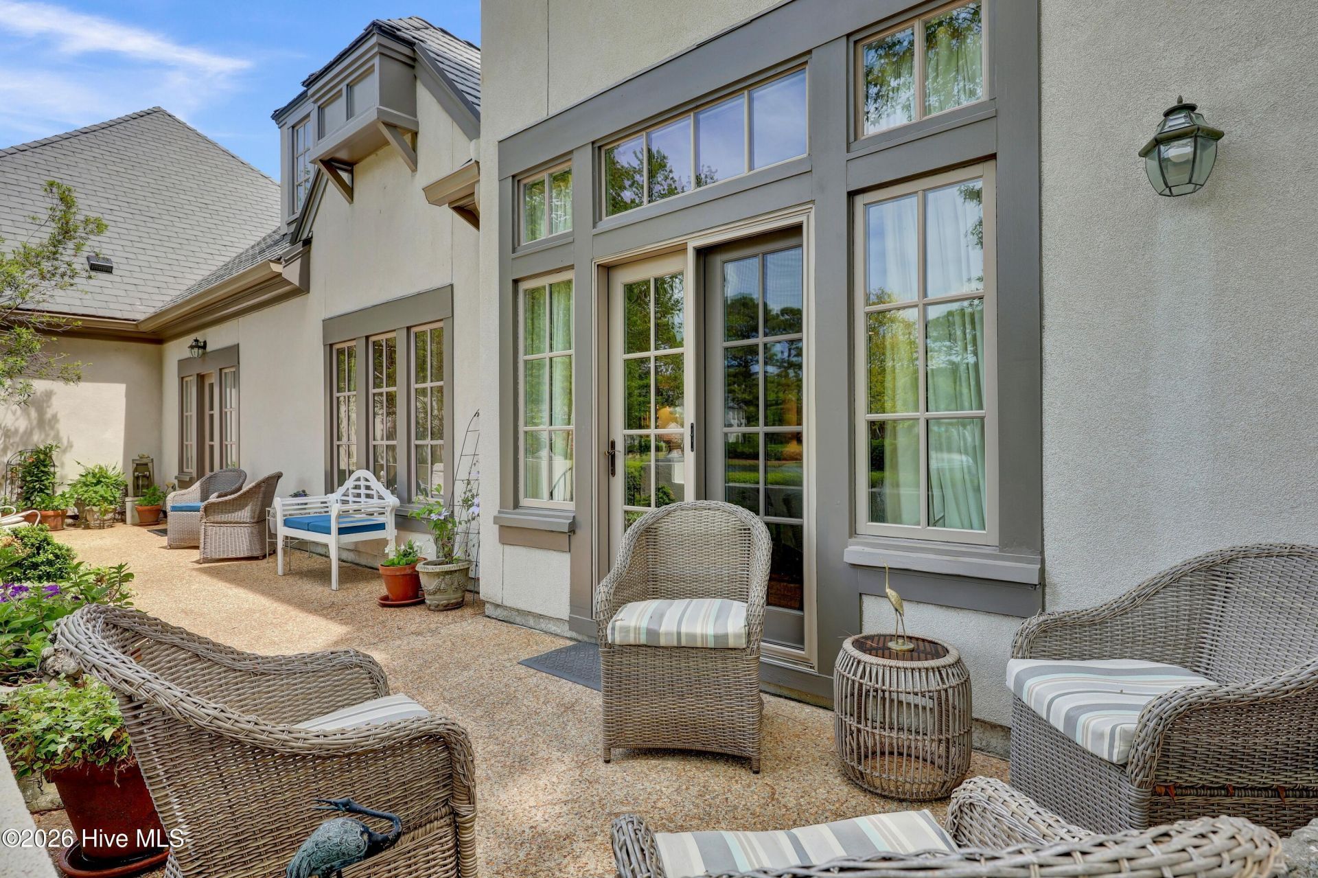 Welcome to magical living in this charming French Provencial villa in the Pembroke community of Landfall Country Club. Featuring 2984 square feet, 3 bedrooms and over four bathrooms; in this priceless corner location overlooking the picturesque lake with easy access to Eastwood Drive gate and Wrightsville Beach. Gorgeous exterior landscaping and mature trees, in this established neighborhood, offer views of wildlife, a fountain and much more from the expansive cobble stone patio. Unbelievable details include wooden accents, antique heart pine floors, a fireplace and stunning views from every room. Enjoy the 2-car garage that opens into the cozy library with built-in cabinets and adorable windows. The powder room, boasting marble floors, flows into the kitchen with a pantry and walk-in laundry room. The exquisite entrance hall connects the formal living room with a wood burning fireplace and a formal dining room with French doors to the patio. The first-floor master suite flows off the main entrance with patio access. The majestic stairs to the second master has a balcony overlooking the front entrance and yard. The upstairs master has two bathrooms, his and hers. Another private retreat is an additional ensuite bedroom over the garage with two walk-in closets and plenty of storage and natural light. As if this is not enough, Pembroke in Landfall is only a walk to the post office, tennis courts, pickleball and new swimming areas. Close to grocery stores, restaurants and shopping, Landfall is home to World Class golf and impressive amenities, including 2 clubhouses. Wilmington is a charming coastal city known for its historic riverfront, vibrant downtown, and easy access to nearby beaches.