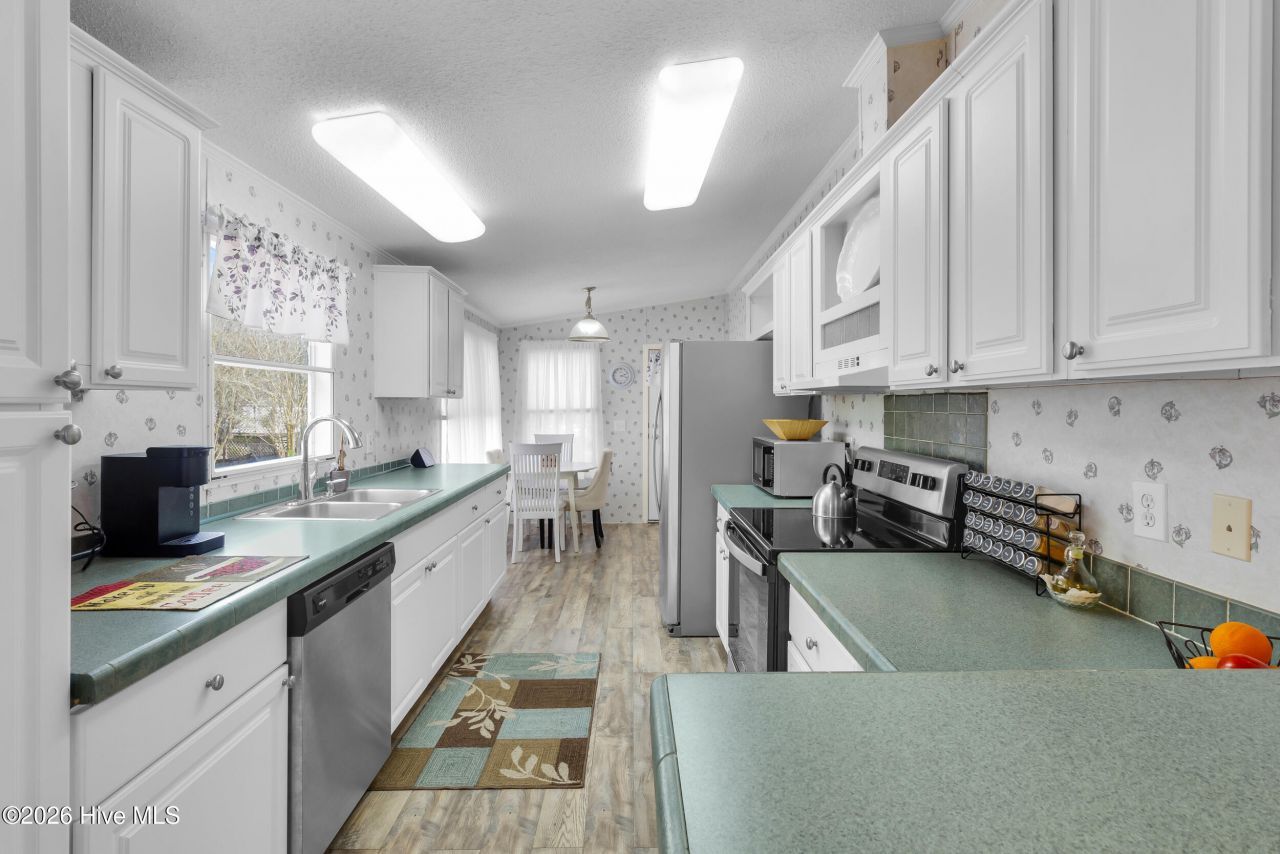 Set on approximately 1.54 acres with a peaceful country feel, this 3-bedroom, 2-bath pond-front home offers space to enjoy the outdoors and convenient access to recreation. Located about 1/4 mile from the State Wildlife boat ramp and fishing pier on the Neuse River, the property provides easy access to fishing, boating, and exploring the surrounding waterways.Inside, the comfortable living room flows into the formal dining area. The bright kitchen features white cabinetry, stainless steel Whirlpool appliances, and a breakfast nook. Waterproof luxury vinyl plank flooring runs throughout the main living areas, with carpet in the bedrooms, and fresh interior paint adds a clean, updated feel.The split floor plan offers added privacy. The primary bedroom with a spacious closet and private bath includes a tub and shower. On the opposite side of the home are two additional bedrooms and a full bath. There is also an indoor laundry room with lots of shelving. Outdoor living includes a spacious screened porch with ceiling fan overlooking the pond, ideal for relaxing and enjoying the natural setting. The property offers plenty of room for boats, vehicles, and recreational equipment. Additional improvements include a raised roof carport and workshop. The home has been elevated approximately 4-5 feet and has not flooded.Located about 18 miles from historic downtown New Bern and nearby medical centers, residents enjoy convenient access to waterfront parks, boating on the Neuse and Trent Rivers, local dining, shopping, farmers markets, and seasonal festivals.
