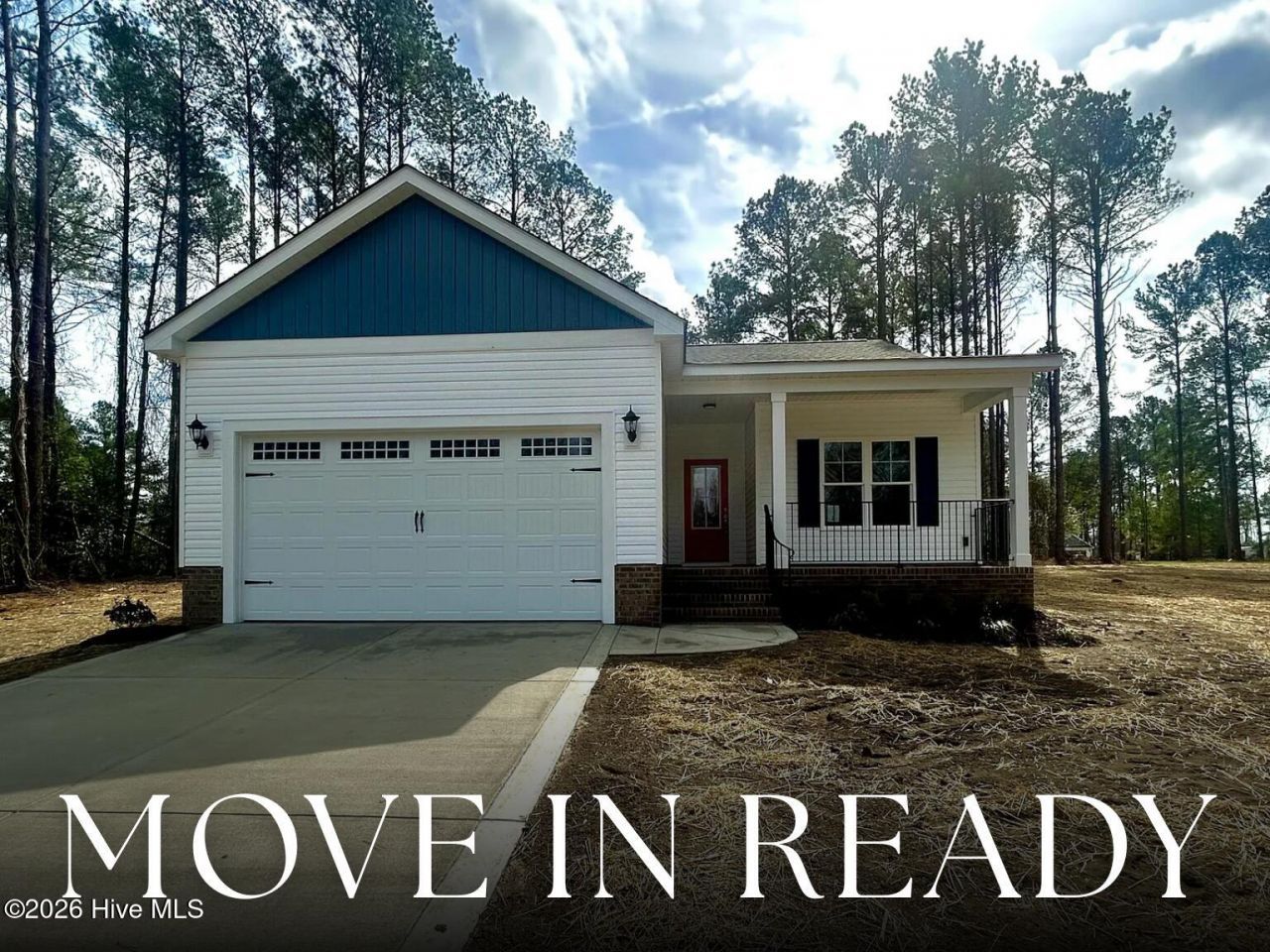 MOVE IN READY! LARGE BUILDER INCENTIVE $12,000* - CAN BE USED TOWARDS UPGRADES OR CLOSING COSTS.Welcome to Walnut Run and the beautifully designed Lindsay Plan, offering 1,396 sq. ft., 3 bedrooms, and 2 full baths, perfectly situated on a quiet cul-de-sac lot. The inviting entry foyer leads past the guest bedrooms and bath into a spacious family room that flows seamlessly into the sunny dining area and open kitchen. The kitchen features quartz countertops, stainless steel appliances, a tile backsplash, and a convenient pantry--ideal for everyday living and entertaining.The owner's suite offers a private retreat with dual quartz vanities, a walk-in shower, and a large walk-in closet. Enjoy outdoor living with covered front and back porches, perfect for relaxing mornings or unwinding in the evenings. Additional highlights include a separate laundry room and a two-car garage.Walnut Run is known for its spacious lots and wooded buffers, providing privacy while remaining conveniently located near Jacksonville, Goldsboro, Seymour Johnson AFB, and Wayne Memorial Hospital, with an easy commute to Greenville and Raleigh.This home perfectly blends comfort, style, and convenience- MAKE YOUR NEXT MOVE, YOUR BEST MOVE.