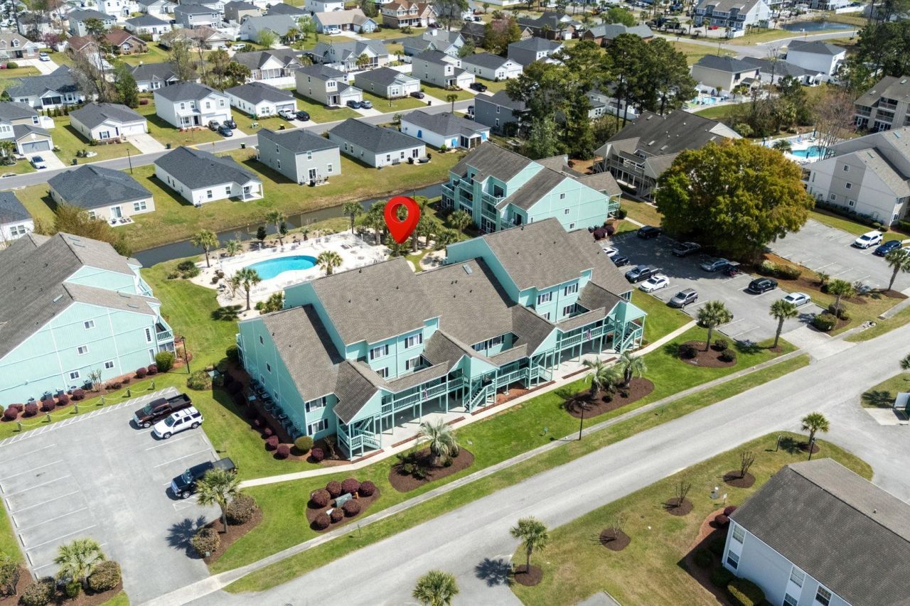 This 2-bedroom, 2-bathroom condo at Golf Colony Resort offers one of the largest floor plans in the community with approximately 1,242 heated square feet and an open layout designed for comfortable everyday living. Ideally positioned between Highway 17 Business and Highway 17 Bypass in the Surfside Beach area, the location provides quick access to restaurants, shopping, entertainment, and the beach. Sold fully furnished and overlooking the community pool, this unit is ready for immediate use as a primary residence, second home, or investment property. A new HVAC system was installed in 2023. Stylish and low-maintenance 18 tile flooring is throughout the main level while luxury vinyl plank flooring is upstairs. Entry is via a private staircase leading to a landing with space for beach gear. The kitchen is updated with granite countertops, tile backsplash, undermount sink, pantry, and breakfast bar. Recent improvements in 2025 include a new stainless steel refrigerator, dishwasher, garbage disposal, faucet, and PUK lighting over the sink. The kitchen flows directly into the dining and living areas maintaining an open feel. The family room is notably large at over 17 by 16, with vaulted ceilings, two skylights, and sliding glass doors that bring in natural light and views of the pool. A mantle with mounted TV creates a central gathering space, while the larger spiral staircase leads to the upstairs suite. The balcony off the family room features updated Trex-style decking, a comfortable spot to relax and overlook the pool, and a laundry closet with side-by-side washer and dryer. The main-level bedroom is generously sized with vaulted ceilings, a ceiling fan, two closets, and a king bed, with easy access to a full bathroom featuring tile floors and a tub/shower combination. Upstairs, the second bedroom offers over 17x17 of space with a vaulted ceiling, ceiling fan, and nice sized walk-in closet. The adjoining bathroom includes tile flooring and a tub/shower combination. Residents of Golf Colony enjoy access to a large community pool, grilling area, and two tennis courts. The HOA covers building insurance, basic cable, internet, water and sewer, trash pickup, pool and landscaping maintenance, common area repairs, property management, and pest control. Owners are permitted pets, motorcycles, and golf carts. Life here means easy access to the beach, relaxed afternoons by the pool, and a layout that supports both quiet downtime and gathering with friends and family. Schedule your showing today and take advantage of this well-located, move-in-ready condo.