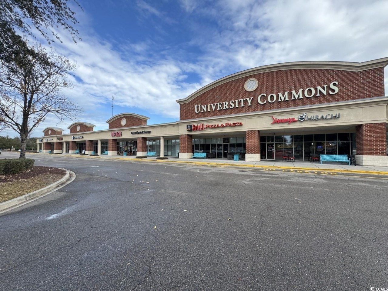 For Lease: 2,528 SF end cap restaurant with covered outdoor patio located at University Commons, a busy retail strip center strategically located at the signalized intersection of Hwy 501 and University Blvd, adjacent to Coastal Carolina University. Also in close proximity are Horry Georgetown Technical College, Conway Medical Center, Lowes Home Improvement and a new Marriott Fairfield Inn located on the adjacent property to the north. Unit 101 consists of large indoor & outdoor dining areas, open kitchen with hood, private food prep/storage area and 2 restrooms. Tenants at University Commons include Conway Medical Center, Tropical Smoothie Cafe, Select Physical Therapy, Rotellis Pizza & Pasta, Tu Taco, Jimmyz Hibachi, Insomnia Cookies, Tongys, Hair Salon, Nail Salon, etc. Average Daily Traffic on Hwy 501 is 51,600 (2023 SCDOT).