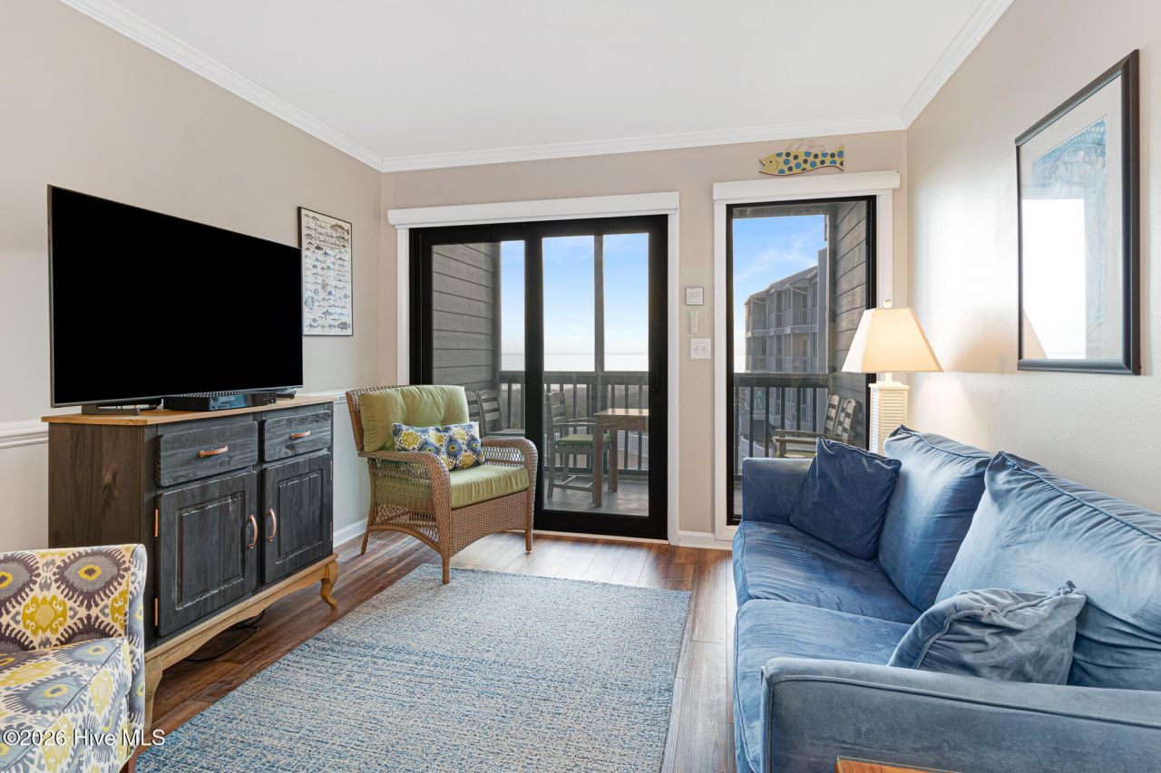 Updated with high-end finishes, this oceanfront 3-bedroom, 2½-bath furnished condo in Dunescape offers the perfect blend of style and coastal comfort. Luxury vinyl plank flooring runs throughout, complementing the beautifully renovated kitchen featuring custom cabinetry, quartz countertops, tile backsplash, and a spacious island with additional seating that opens seamlessly to the dining area.The inviting living area features access to a screened porch overlooking the pool with sparkling ocean views and opens to the hallway with a gorgeous wet bar. The primary suite boasts a private balcony to take in the scenery, along with an updated ensuite bath showcasing a zero-entry tiled shower. A guest bedroom and updated full hall bath provide comfortable accommodations, while the front bedroom enjoys its own private half bath.Additional highlights include two ground-floor storage units, a Santa-Fe in-wall dehumidifier for enhanced comfort and efficiency installed in January of 2026, and custom shades and shutters throughout. This property is an established vacation rental with proven income potential.Dunescape amenities include a large oceanfront sundeck just steps away with breathtaking views, four on-site pools, private beach access points, and sound-side access complete with a pier and day docks--everything you need to enjoy the best of coastal living. Whether you're seeking a relaxing coastal retreat or a strong income-producing investment, this exceptional oceanfront condo offers the very best of both worlds.