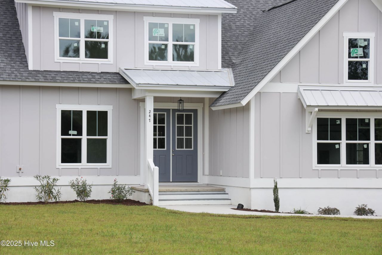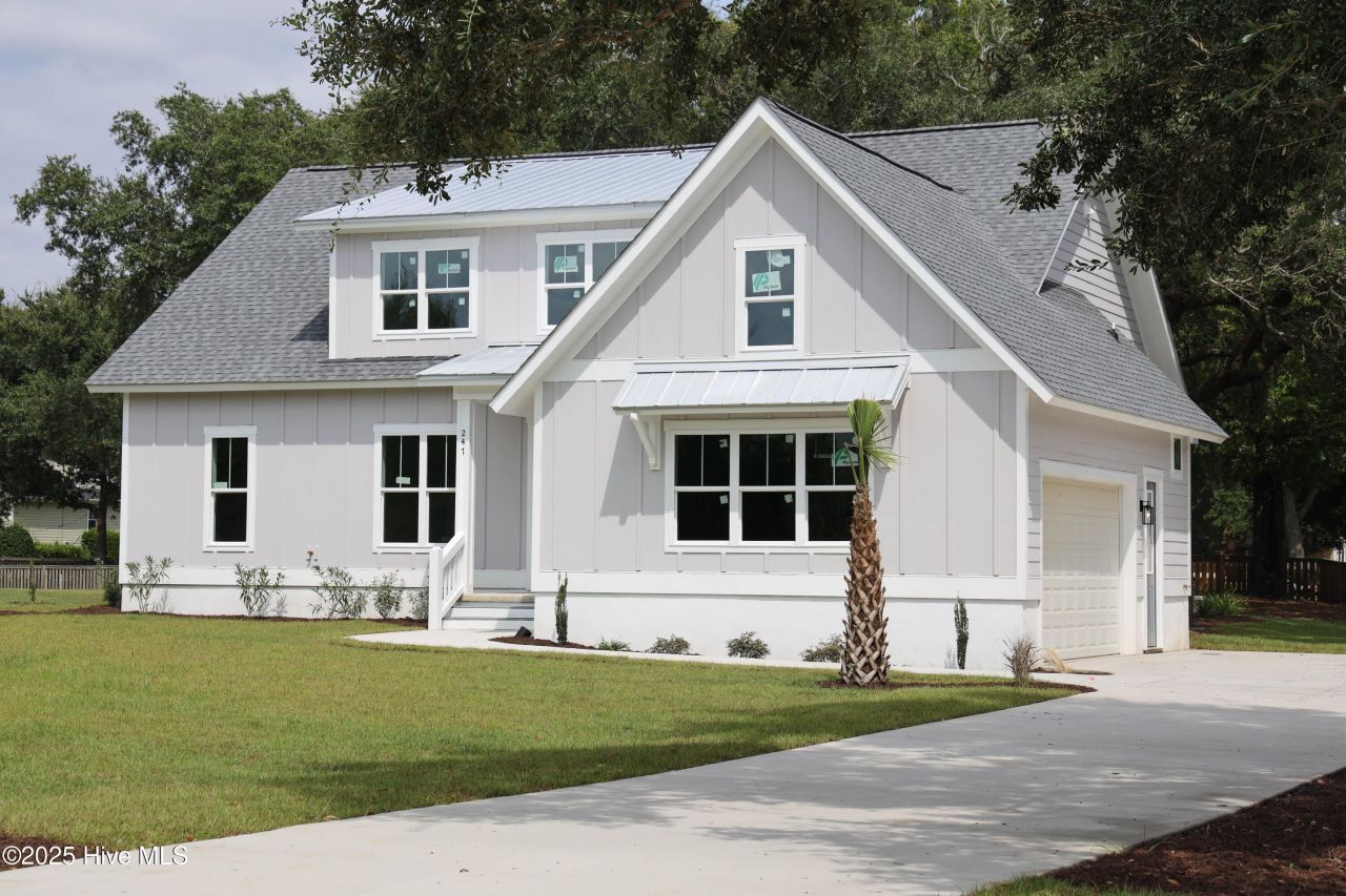 Coastal Craftsmanship Meets Modern LuxuryThis brand-new custom home offers 2,229 SQFT of thoughtfully designed living space, plus an additional 311 SQFT ready to become a future bonus room or 4th bedroom (4-bedroom septic permit already in place).*Deeded water access is at the end of Kings Harbor DrInside, soaring vaulted ceilings frame the main living area, where an elegant electric fireplace and open design create a bright and inviting space. The kitchen is a true centerpiece with marble countertops, soft-close cabinetry, walk-in pantry, and a premium LG Profile appliance suite.The 1st floor primary retreat is designed for privacy and comfort, featuring sound-insulated walls, custom closet shelving, and a spa-inspired bathroom.A striking 2nd floor catwalk with modern cable railing overlooks the living room below and connects two additional bedrooms and a full bath.Built with quality and longevity in mind, the home includes:Oak tread stairs, dual Trane HVAC systems, Hardie siding, Trex decking, and professional landscaping centered around a beautiful live oak tree.Located just off Kings Harbor Drive, the property also offers deeded boat ramp access, giving you quick access to the water and the coastal lifestyle Hampstead is known for.