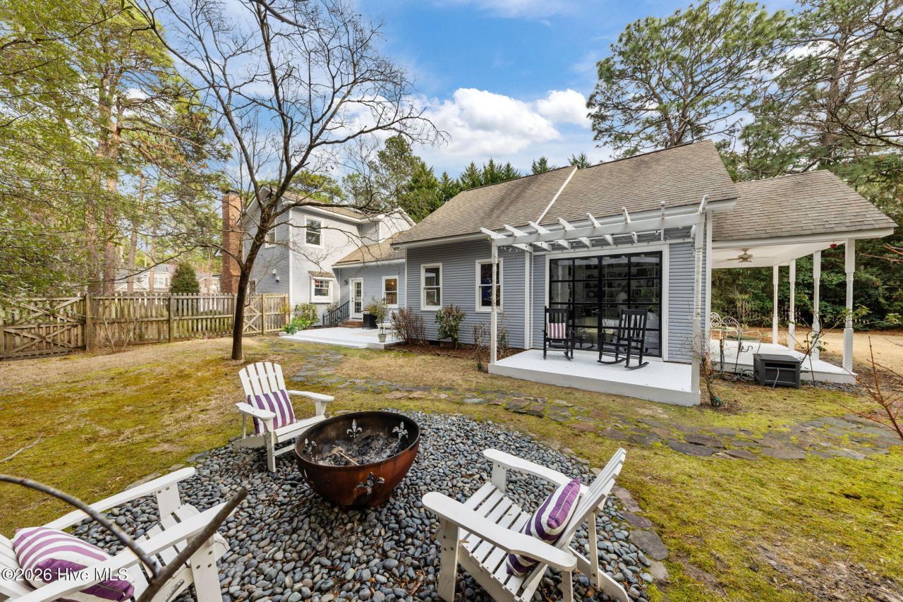 Welcome to The Jewel Box, a rare gem nestled in the historic districtof the Village of Pinehurst. This luxurious three-bedroom,two-and-a-half-bath residence offers expansive living, with every roombathed in natural light and generous proportions. A grand living roomand dining room, with wood burning fireplaces facing each other, creates elegant and cozy spaces for entertaining. A quiet library, large bedrooms, and two full plus one-half bathrooms provide serenecomfort. The kitchen has been exquisitely upgraded with Carrera marblecountertops and stainless-steel appliances. The master bathroom is atrue retreat, featuring a soaking tub, a walk-in shower with a sleeksliding glass door, and refined finishes. The oversized laundry roomprovides function and storage. Outside, four distinct spaces await:a full-width front porch, a side deck, a private side patio, and backdeck provide endless entertaining options. Plus, enjoy a transferablemembership to the Pinehurst Country Club, buyer to pay the transferfee. Every detail exudes refinement, just steps from world classgolfing, shopping, dining, the elementary school, churches, and thevillage park. Welcome Home!