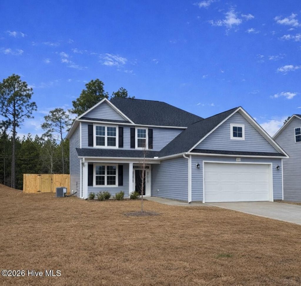 Welcome to the CL2560 Plan, built by trusted builder, Caviness Land, in Creekside Oaks South! Now with FENCED BACK YARD + SODDED FRONT AND BACK YARD + BLINDS + $8,500 BUYER INCENTIVE!Discover your dream home in Creekside Oaks South, a brand-new community in Harnett County featuring sidewalk-lined streets and a welcoming neighborhood feel. This beautifully designed 2-story home offers 4 bedrooms, 3.5 bathrooms, and 2,560 square feet of well-appointed living space, perfectly suited for modern living.Step inside to find a light and airy open floor plan, highlighted by a formal dining room, a spacious Great Room with an electric fireplace, and a stylish kitchen with center island and breakfast nook - perfect for everyday living and entertaining alike.The main-floor master suite is a true retreat, boasting a trey ceiling, generous walk-in closet, and a spa-inspired en suite bath. Upstairs, you'll find three additional bedrooms, two full baths, a versatile loft, a dedicated home office, and a convenient laundry room - all designed to meet the needs of a growing household.This home sits on a generous interior lot and includes a 2-car garage, a back patio, and privacy fence in back yard.Don't miss this opportunity to own a brand-new home in one of Harnett County's most exciting new communities. Schedule your tour today!