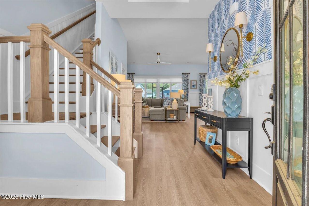 The Cumberland plan offers the perfect blend of style, space, and functionality with an open-concept layout and soaring 10-foot ceilings that create a bright, airy feel throughout. The gourmet kitchen is a true centerpiece, featuring 42' staggered cabinets with crown molding, granite countertops, tile backsplash, stainless steel appliances, and a spacious walk-in pantry--ideal for both everyday living and entertaining.Luxury Vinyl Plank flooring flows through the main living areas, delivering a beautiful wood-look finish with durability. Designer details elevate the home, including wainscoting accents and a custom stairwell with beadboard trim. Thoughtfully designed California Closets provide exceptional organization throughout.The owner's suite is a private retreat with a step-in 5-foot shower and dual vanity. Enjoy relaxing evenings on the oversized covered porch, perfect for year-round outdoor living.Located in Brunswick Forest, this home offers access to resort-style amenities and a highly sought-after coastal lifestyle. Move-in ready with upscale finishes--this one checks all the boxes.