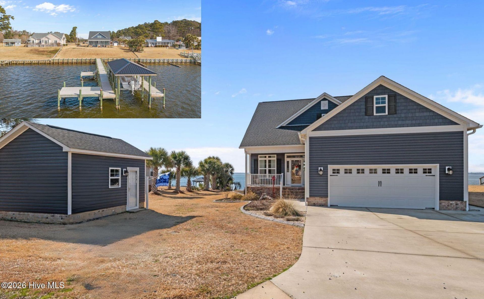 Dreaming of life on the water without the headache of being in the flood zone? Welcome to 30 E North Shore Lane--where stunning Neuse River views and coastal charm meet everyday comfort. Only a few nautical miles from the sailing capital of NC, this 3 bedroom, 2 full bath, 1 half bath with bonus loft waterfront home offers a layout designed to maximize natural light and breathtaking water vistas. Wake up to panoramic river views from your primary suite, then wander into the spacious living room and enjoy a cozy fire in the gas fireplace while overlooking the water. Your chefs kitchen has an island made for entertaining and adjoins your formal dining room. Upstairs there is a loft to gather for games, television or a great spot for exercise equipment as well as 2 bedrooms and a full bath. Next, step outside onto your screened porch to take in the coastal breeze, stroll across your generous waterfront lot, and make your way to your private pier complete with a boat house and boat lift--ready for effortless days on the water. Spend afternoons fishing for drum, trout, and flounder in season, cruising to New Bern or Oriental for waterfront dining, or launching your kayaks launched off your swimming platform for a peaceful paddle along the shoreline. Back at home, entertain with ease or unwind on the porch as the sun sets over the Neuse. Practical features add to the appeal, including a wired storage building for hobbies or equipment, ample storage throughout including an enormous unfinished attic, and space for all your coastal toys. Whether you envision boating at sunrise, evenings by the water, or simply soaking in serene river views from your living room, this North Carolina waterfront retreat offers the lifestyle you've been dreaming of. The only thing missing is you!