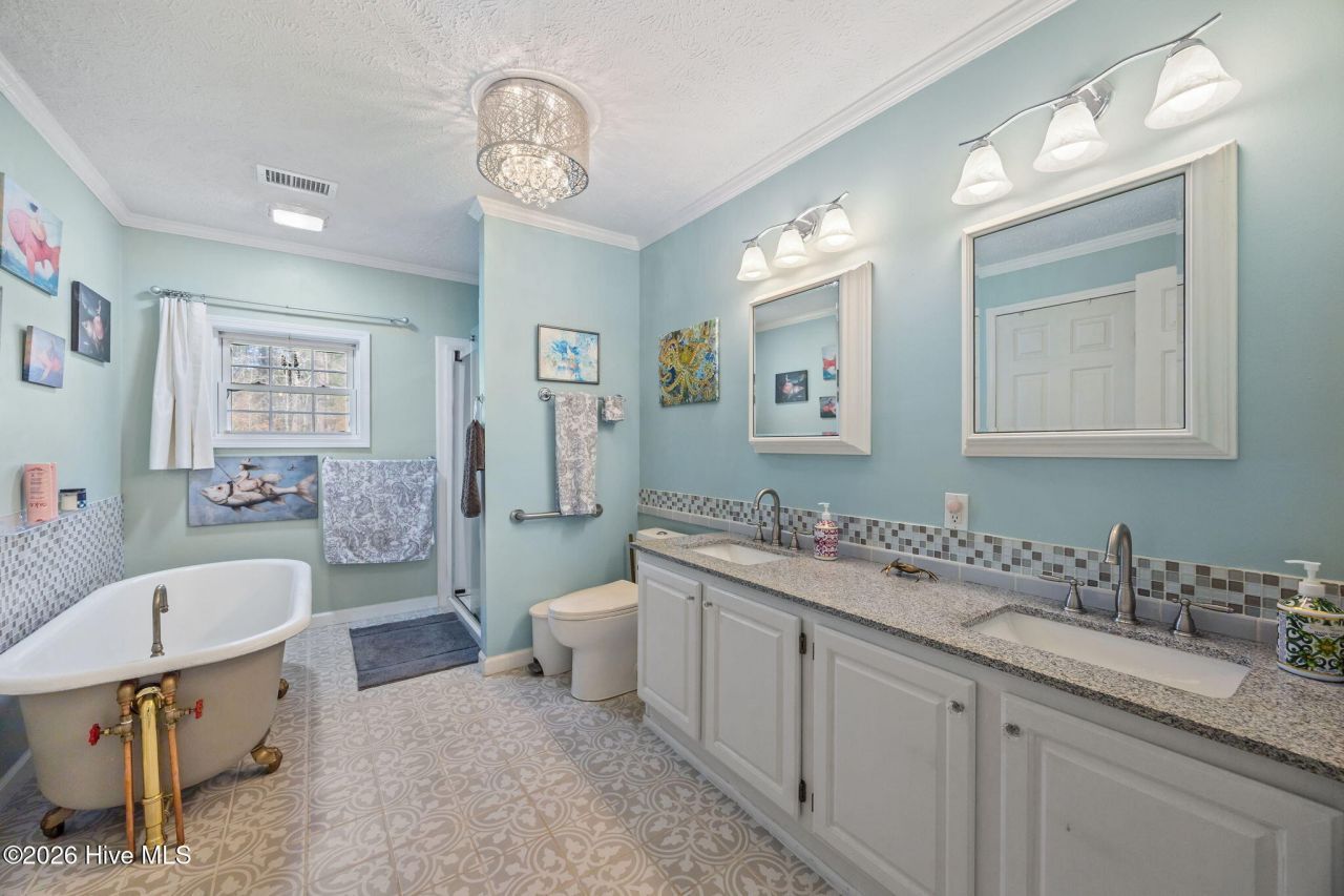 This 3-bedroom, 2.5 bath home, perfect for homesteading, sits on just under 4.5 acres and offers a quiet, rural setting ideal for gardening, keeping animals, or simply enjoying a peaceful life in beautiful Eastern North Carolina. Inside, the kitchen has been thoughtfully updated with luxurious granite countertops, new modern light fixtures, and a large island, giving you plenty of room for cooking, baking, or gathering with family and friends. The primary bathroom features a classic clawfoot soaking tub with separate shower, tile flooring, and convenient access to a spacious walk-in closet. Just off the main living area, choose between the front or back screened-in porches for a comfortable spot to start the morning with coffee or wind down in the evening while looking out over the yard and watching birds and local wildlife. The land itself has been lovingly cared for and includes grapevines along with a variety of fruit trees, including fig, pecan, pear, crab apple, and peach. Mature trees, flowering plants, and a decorative fish pond add character to the property and create a calm outdoor setting throughout the seasons. The property includes several well-placed outbuildings that add both function and flexibility to the land. An enclosed chicken coop with an automated door is already set up for those interested in keeping chickens or starting a small homestead. Nearby, the barn is divided into three separate areas, offering a variety of possible uses--whether for animals, equipment, feed storage, recreational gear, or ongoing projects. There is also a 1,000+/- square foot workshop with its own small front porch and a separate storage shed providing extra room for lawn equipment, gardening supplies, or seasonal items. Together, these structures make the property especially practical for anyone who appreciates having dedicated space to work, store, and create. Located 10 minutes from Belhaven, the property offers the quiet and privacy of country living while still being within reasonable reach of local conveniences and amenities. Located near several boat ramps, the surrounding area also provides opportunities for boating, fishing, hunting, and other outdoor recreation. Properties like this are hard to find--where the home, land, and outbuildings come together to create a place that's both practical and full of possibility. Schedule your appointment to view this one-of-a-kind property today!