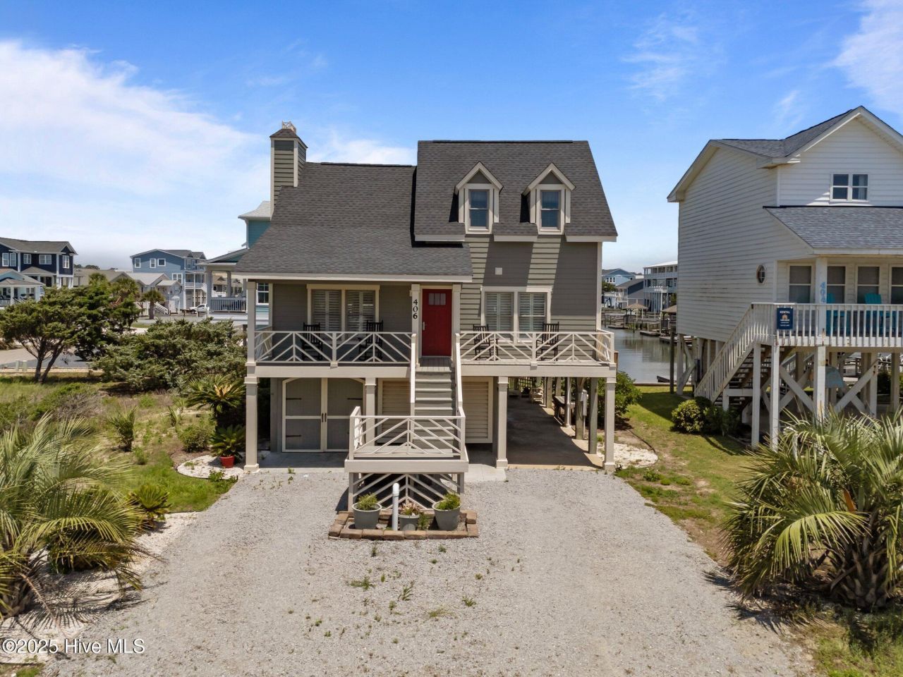 Great new price on this beautiful second row home! Nestled just one row back from the oceanfront, this stunning beach home offers the best of coastal living with ocean views from the front and canal views from the back. Featuring three spacious bedrooms, three full baths, and a versatile loft area that is currently being used as a fourth bedroom, this home provides ample space for relaxation and entertaining. Master bedroom could be up or down with ocean views on the main level master and canal views from the second level. Great room has beautiful hardwood floors and a gas log fireplace. Enjoy the views of the canal while sitting at the dining room table. Updated kitchen with granite counter tops, island, and walk in pantry. The enclosed garage offers a spacious workshop on one side and a game room on the other. Just a short walk to the beach access and you will have your toes in the sand.