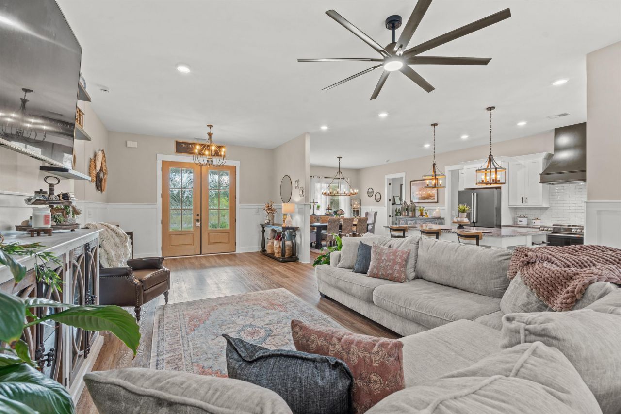 Set behind the gates of Cypress River Plantation, this modern farmhouse is more than a home...its a lifestyle shaped by space, water access, and a true sense of community. Situated on a rare .78-acre lot, the property blends architectural character with everyday comfort, all while offering the privacy and freedom that make this neighborhood so special. Since construction, a private backyard pool has been added, transforming the outdoor space into a personal retreat designed for entertaining, relaxing, and enjoying the Lowcountry climate year-round. From the welcoming front porch overlooking the community fountain to the open, light-filled interior, the home feels intentional and inviting. Ten-foot ceilings, oversized doors, and thoughtfully selected finishes create a clean, timeless look that balances modern style with warmth. The main living areas flow effortlessly into a spacious kitchen built for gatheringanchored by a large island, generous pantry space, and high-end appliances that make cooking and hosting feel effortless rather than overwhelming. The first-floor primary suite offers a peaceful escape with a spa-inspired bath and a large walk-in closet, while additional bedrooms and flexible spaces provide room for guests, work, or hobbies. Upstairs, a loft-style room with sliding barn doors adds versatility, and storage is abundant throughout the homesomething buyers immediately appreciate but rarely find. Out back, the newly added pool, fenced yard, and pond views create a setting that feels both private and connected to nature. Whether its an afternoon swim, evening cookout, or quiet morning on the porch, the outdoor living here truly completes the home. Living in Cypress River Plantation means enjoying gated security, beautifully maintained amenities, and rare access to the water. Residents have use of day docks and private boat access to the Intracoastal Waterway, making boating, fishing, and waterfront living part of everyday lifenot a weekend exception. A clubhouse, pool, sports courts, and golf-cart-friendly streets foster a neighborhood atmosphere thats active, social, and welcoming.