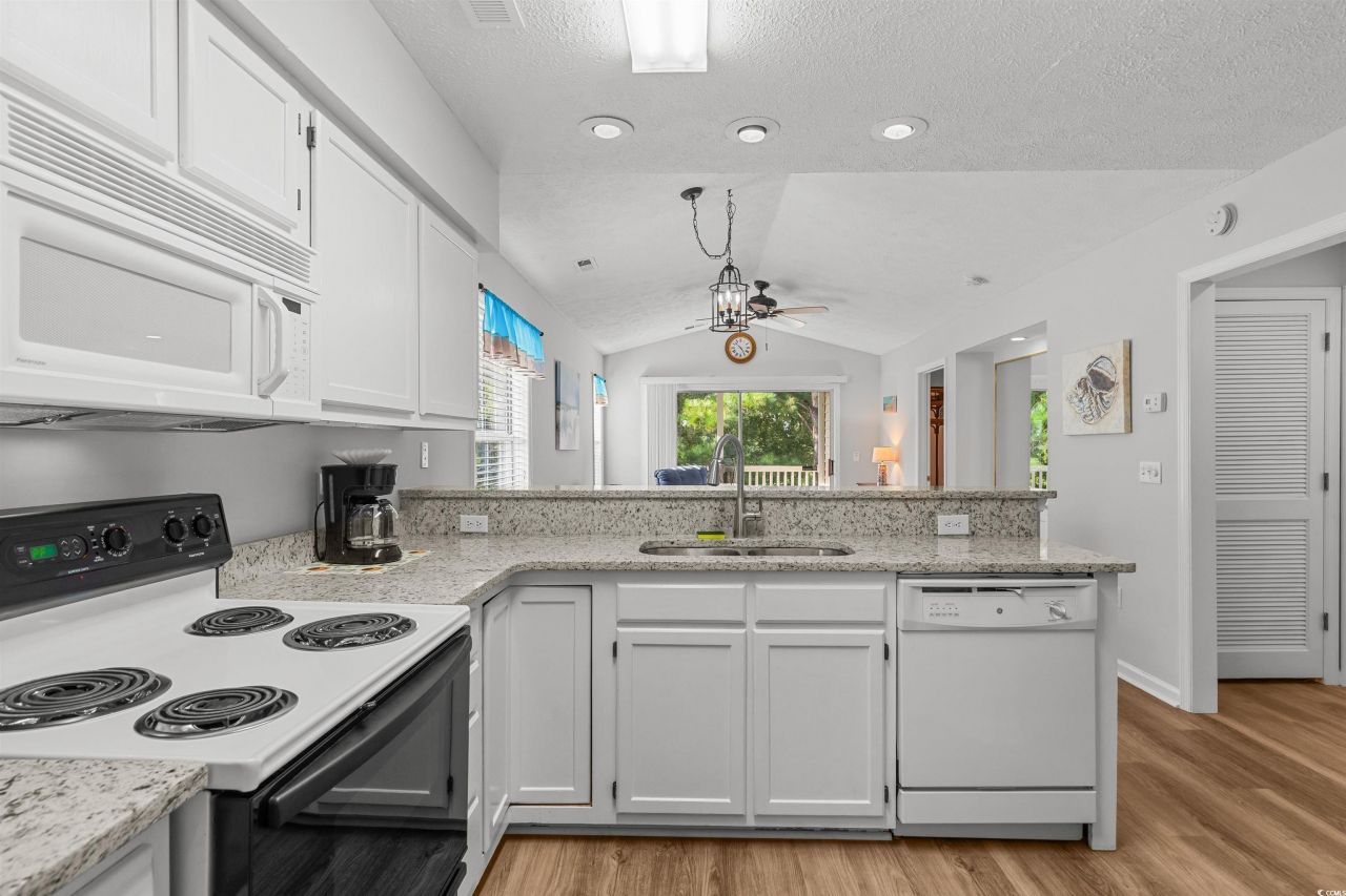 This move-in ready third-floor condo in the River Oaks community has been completely refreshed and is ready for its new owner! Featuring brand new granite countertops, luxury vinyl plank flooring throughout, and a fresh coat of paint. The living area boasts vaulted ceilings for an airy, spacious feel, and the sliding glass doors lead to a balcony perfect for relaxing. The kitchen is bright and functional, with ample cabinet space and a breakfast bar. This condo is located just steps from the community pool. River Oaks is ideally situated minutes from Myrtle Beachs beautiful beaches, top golf courses, shopping, dining, the airport, and attractions. Whether youre looking for a primary residence, vacation getaway, or investment property, this condo checks all the boxes. Schedule your showing today.