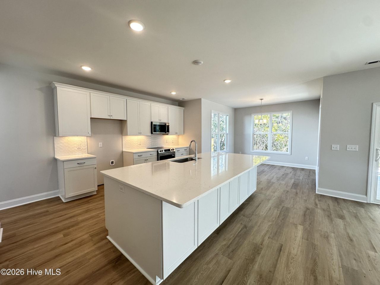 MOVE-IN READY & BRAND NEW! BUILDER INCENTIVES AVAILABLE! Introducing the brand new community of Sawyers Run, tucked away in Hampstead with spacious homesites and a peaceful setting! The popular ''Nicklaus'' plan built by Stevens Fine Homes offers 4 bedrooms, 3 baths, a spacious kitchen with an oversized island and 42'' cabinetry, a formal dining room, rear covered porch, situated on a desirable homesite backing up to a lovely treel ine,, and beautiful finishes throughout! The kitchen is a dream with quartz countertops, soft close 42'' white cabinetry, under-cabinet lighting, picket tile backsplash, stainless steel appliances, two lighted pantries & more. The bright breakfast room adjoins. The large living room features an inviting fireplace and lends access to the peaceful rear covered porch & extended patio. The formal dining room offers a lovely space to entertain, and a first-floor guest bedroom makes it the perfect home for hosting. Upstairs, you'll find a flexible family room, which makes a wonderful playroom or home theater. The spacious primary suite featuring a trey ceiling and attached bath with double vanity with quartz counters, 12x24 tile flooring, a gorgeous walk-in tile shower & separate soaking tub, a water closet, & large walk-in closet. Two additional bedrooms, a well-appointed guest bath with separate sink & shower areas, and a laundry room complete the home. Luxury finishes include luxury vinyl plank flooring throughout the first floor living areas, LVP or tile in all baths & laundry, quartz counters in kitchen & full baths, fireplace, 5 3/4'' baseboards, tile shower in primary bath, elevated lighting & plumbing fixtures, sod & irrigation in yard, exterior coach & flood lights, gutters and more! The home is estimated to reach completion in December, 2025.. Please note that photos shown are of a similar home of the same floor plan & structural options & design finishes may vary.