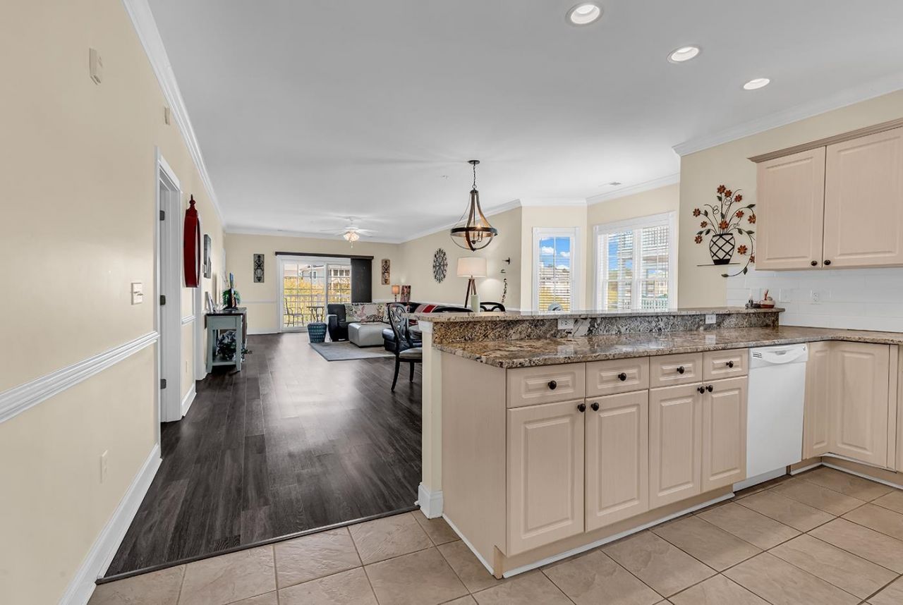 Welcome to this beautifully furnished 3-bedroom, 2-bath third-floor end unit tucked inside a sought-after golf course community in the heart of Myrtle Beach. Filled with natural light thanks to its end-unit location and additional windows, this inviting condo features a lovely bay window dining area and a spacious open-concept layout perfect for relaxing or entertaining. Offered fully furnished, the interior showcases granite countertops, LVP and tile flooring throughout, a stunning Italian leather sofa, washer and dryer, and versatile twin-to-king beds in every bedroom for flexible guest accommodations. Step outside to the expansive wraparound deck overlooking the pond, where you can enjoy peaceful water views and coastal breezes. Located about a mile from the beach and just minutes to Broadway at the Beach, the airport, restaurants, shopping, and entertainment, this property offers the perfect blend of convenience, comfort, and resort-style living. Residents enjoy access to multiple pools and grilling areas in a beautifully maintained golf course setting. Whether youre looking for a primary residence, vacation getaway, or an investment opportunity, this property offers flexibility for personal use and short-term rental potential.
