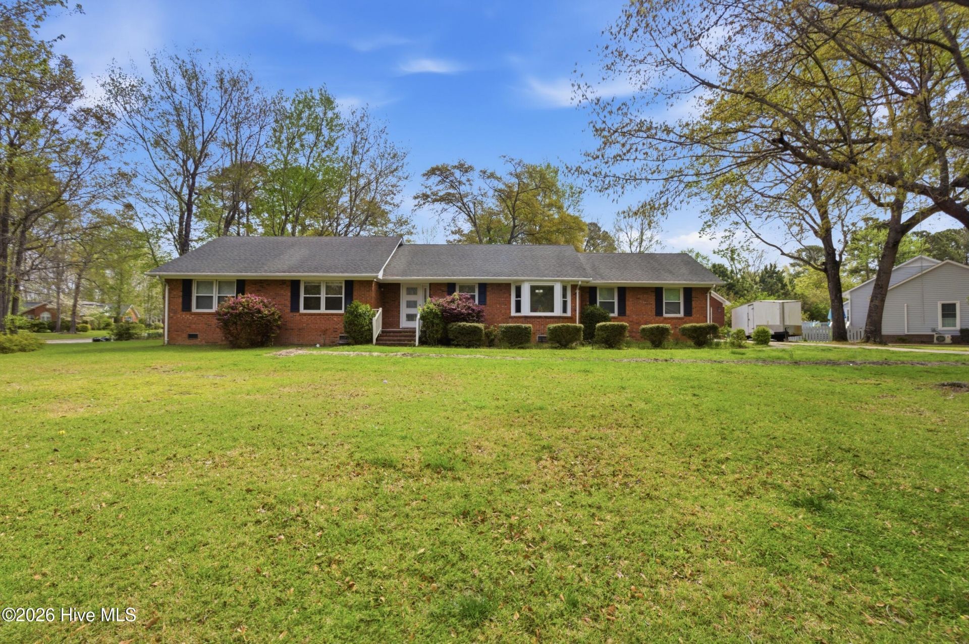 This charming brick ranch in the desirable Greenbrier community offers comfort, style, and convenience. The recently updated kitchen features stainless steel appliances, stone countertops, and a bright breakfast nook with a bay window, perfect for gathering with family or friends.The large living room flows seamlessly into the dining area, providing plenty of space for entertaining. The primary suite boasts two walk-in closets and a private bath with a walk-in shower. Two additional guest bedrooms are generously sized and share a full hall bath.Enjoy the sunporch, accessible from both the living and dining rooms (not included in square footage), or step outside to a beautiful, low-maintenance yard with mature trees. The home includes an attached 2-car garage and a separate brick 1-car garage, ideal as a workshop, home office, or creative space.Greenbrier offers easy access to shopping, New Bern's nationally recognized healthcare system, and is conveniently located about 35 minutes to MCAS Cherry Point and 60 minutes to the Crystal Coast beaches.