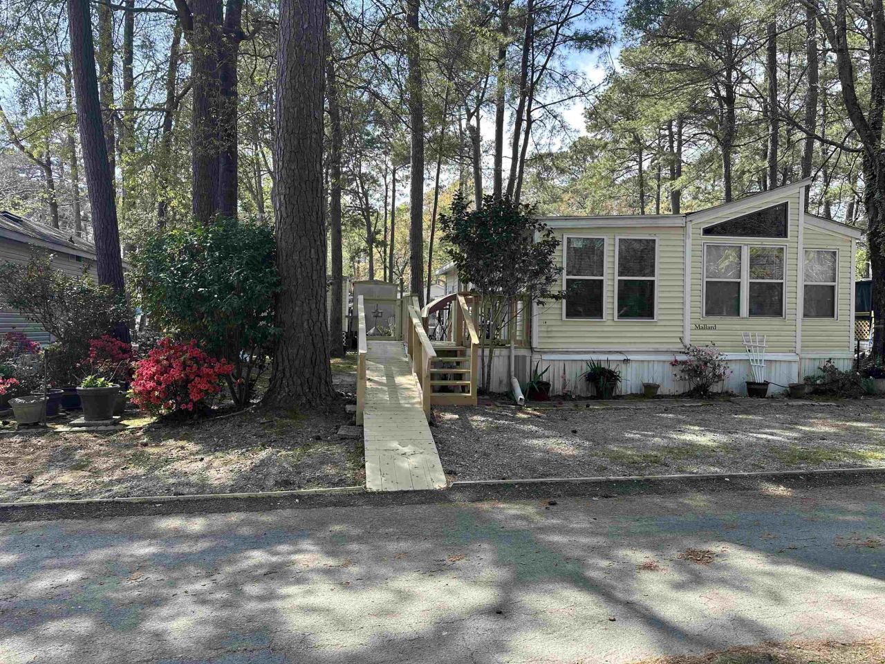 Charming 1992 Mallard park model with Carolina Room addition with a front porch, being sold fully furnished and move-in ready! Unit has a brand new propane gas stove never used and brand new refrigerator. Located just three blocks from the beach an easy golf cart ride away in a 55+ community where both electric and gas golf carts are allowed. This well-maintained 1 bedroom, 1-bath home features washer inside the unit for added convenience. Enjoy the relaxed coastal lifestyle with fantastic community amenities including a pool, splash pad for the kids, and a jump pad. Conveniently located close to shopping, dining, and the airport. No short-term or long-term rentals permitted, making this the perfect low-maintenance beach retreat for snowbirds in the winter or beach lovers in the summer. Dont miss this opportunity to own your slice of paradise just minutes from the ocean!