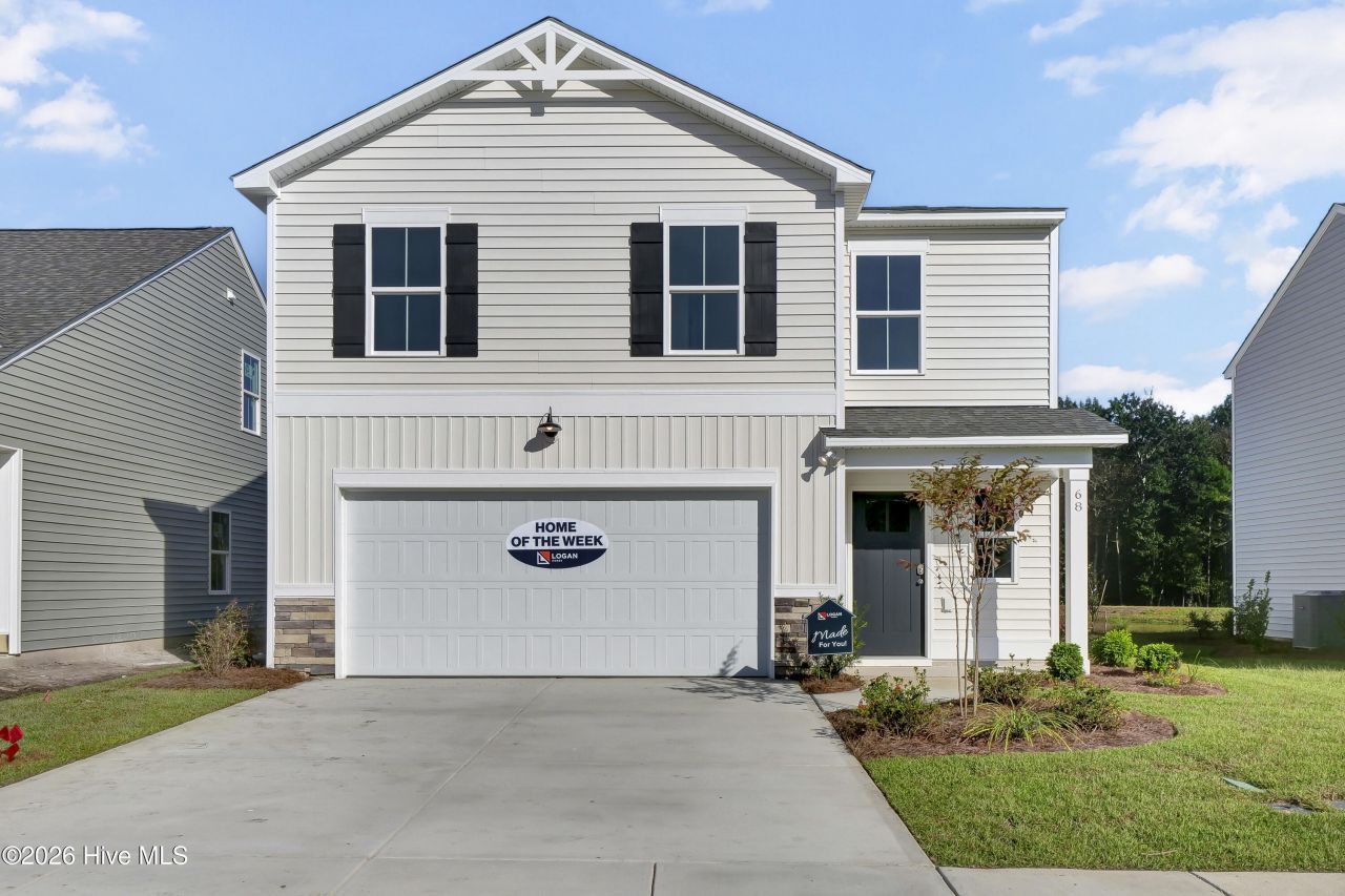 Discover the Rosebay with Farmhouse Elevation on a corner lot! This beautifully designed 4 bedroom, 2.5 bath home with 1,865 sq ft of smart living space and modern coastal comfort. The main level features LVP flooring throughout, 9' ceilings, and a bright, open layout perfect for everyday living and entertaining. The kitchen impresses with granite countertops, 36'' white shaker cabinets, pendant lights, upgraded slide in range, and a spacious island, flowing seamlessly into the dining and living areas leading out to the 12x12 covered porch. Upstairs, you'll find all four bedrooms plus a versatile loft/rec room, ideal for a second living area, office, or play space. The owner's suite includes a tile walk-in shower, quartz countertops, and generous closet space. Step outside to a 12' x 12' covered back porch, overlooking a fully sodded yard with irrigation on all sides. Additional features include flood lights, a dedicated laundry room, and a 2 car garage.Located in the highly desirable Brookfield Branch community, residents will enjoy exceptional amenities including sidewalks, streetlights, a community pool, open-air pavilion, fire pit, playground, and open green spaces.Built for comfort, style, and functionality, this Rosebay has it all! COMPLETION TARGETING END OF APRIL 2026!''Home shown is a representation of the floor plan and may include optional features or upgrades. Elevations, materials, colors, finishes, square footage, and included features may vary from the actual home. Please consult a Sales Representative for complete details.''