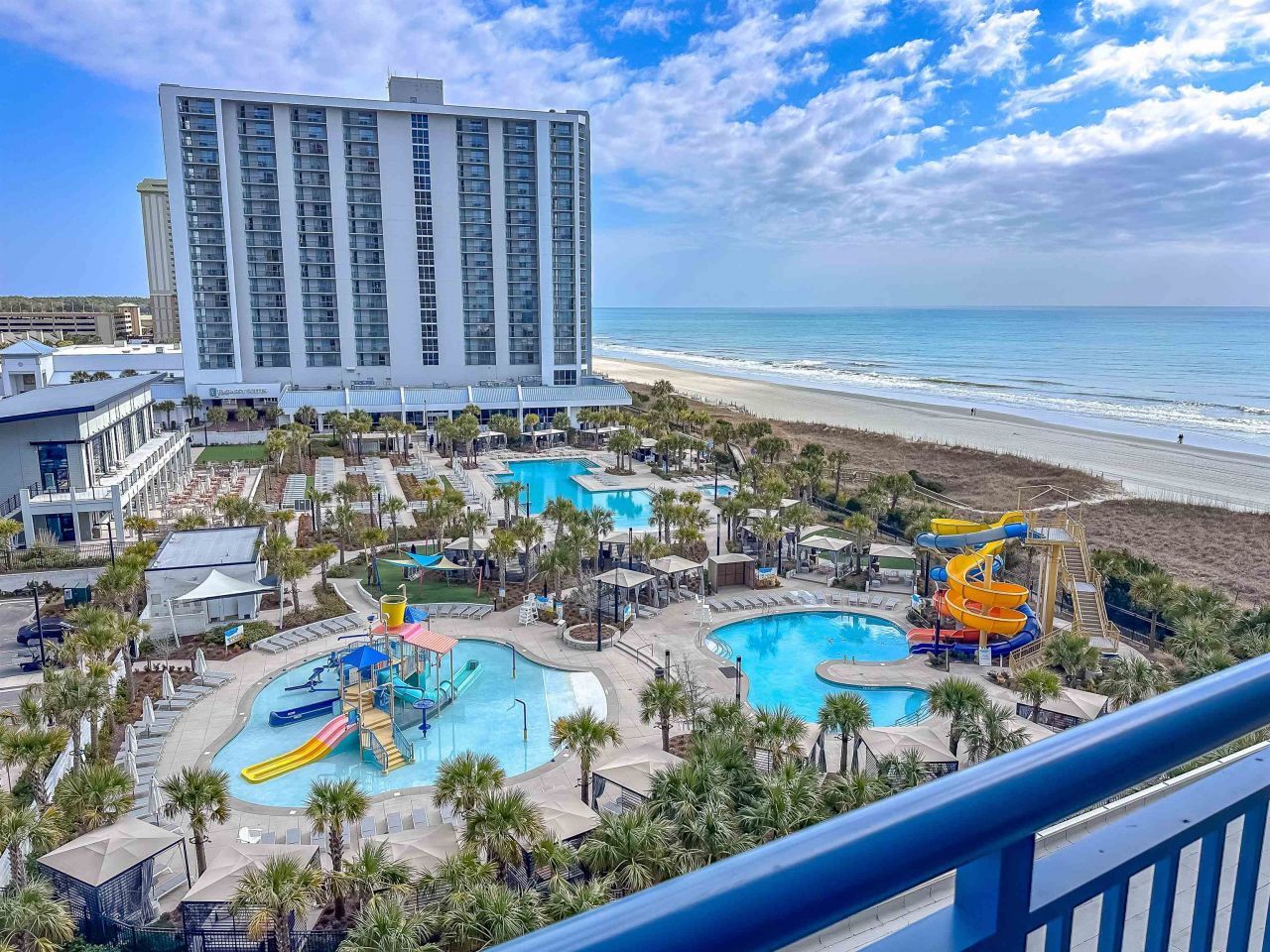 ***BE SURE TO WATCH WALK-THRU VIDEO INCLUDED WITH LISTING!*** Experience stunning ocean views from this beautifully designed two-bedroom, two full-bath residence overlooking the sparkling water amenities of Embassy Suites by Hilton Myrtle Beach Oceanfront Resort. Offering 1,246 interior square feet and 1,479 total square feet, this spacious condo provides the perfect blend of comfort and coastal elegance. The open living and dining areas flow seamlessly onto the expansive deck, ideal for enjoying morning coffee or evening sunsets with breathtaking ocean views. A charming kitchen sitting area also captures the ocean scenery, creating a cozy spot to relax with a snack. Kitchen features granite countertops and stainless steel appliances. Both bedrooms are generously sized, and the layout includes two full bathrooms -- each with marble flooring and vanity tops -- for added convenience. Wood-look ceramic tile enhances the living room, dining area, kitchen, and master bath vanity area, combining durability with sophisticated style. Whether youre seeking a primary residence, vacation getaway, or investment opportunity, this oceanview property offers exceptional space, views, and location. Kingston Plantation is a 145-acre, master planned community in the heart of Myrtle Beach. Kingston offers a combination of amenities and preserved natural environment thats unparalleled. One-half mile of white sand beach, twelve acres of freshwater lakes and mature trees, all surrounded by beautifully manicured grounds. The Plantation offers amenities such as a magnificent Spa and Fitness Center, four clay and hard tennis courts, four pickleball courts, multiple pools, badminton, croquet, beach volleyball and much more! Kingston offers a selection of one, two, three and four bedroom villas, townhomes, lakefront lodges and oceanfront high-rises through the community.